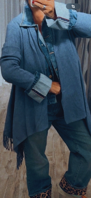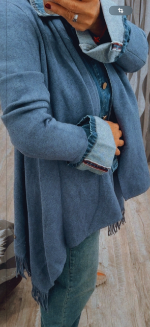 JUPE LONGUE PLISSEE EN MAILLE BLEU JEANS