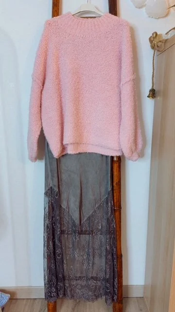 ROBE DENTELLE CHOCOLAT + PULL BEIGE